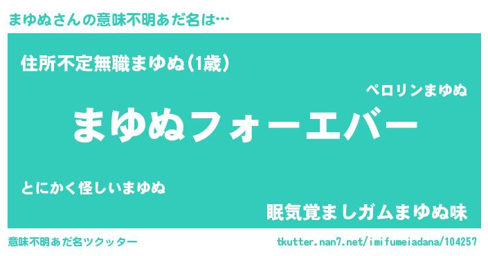 | ヒーロー風カッコイイあだ名 | 『ウルトラまゆぬマン』『仮面マユダー』 |