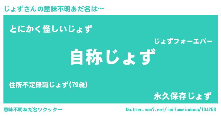 | 男性向けラノベタイトル風あだ名 | 『Re:じょずから始める異世界生活』 |
