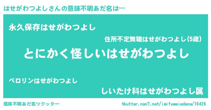 | ポケモン風あだ名 | 『ハセゴンZ』『ヒハセガワツヨシ』 |