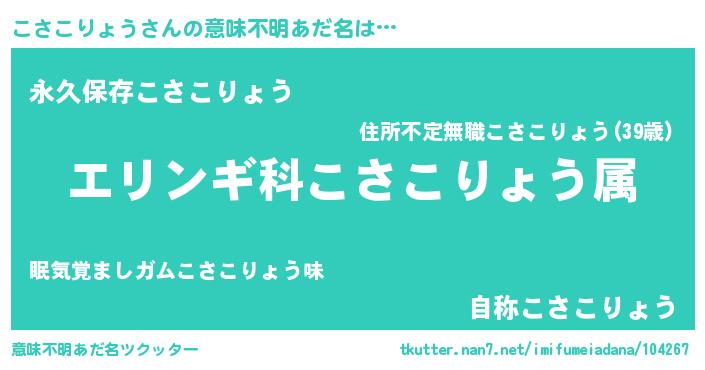 | ヘコむあだ名 | 『こさこりょう(笑)』『こさを』 |