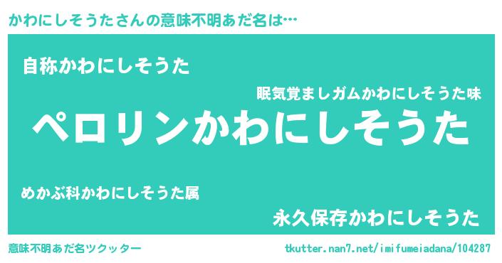 | 男性向けラノベタイトル風あだ名 | 『カワニシソウタアートオンライン』 |