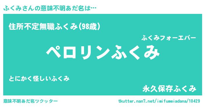 | ヘコむあだ名 | 『ふくにゅー』『ふくみ(遠い目)』 |