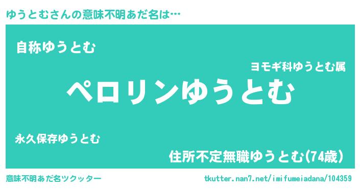 | 男性向けラノベタイトル風あだ名 | 『ゆうとむの憂鬱』『魔弾の王とゆうとむ』 |