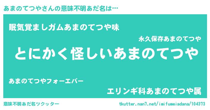 | 男性向けラノベタイトル風あだ名 | 『あまのてつやの嫁は女の子じゃないと思った?』 |