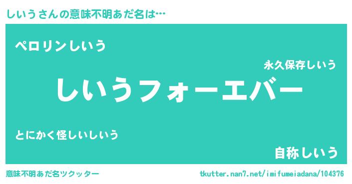 | ヒーロー風カッコイイあだ名 | 『ウルトラしいうマン』『スーパーシイウ』 |