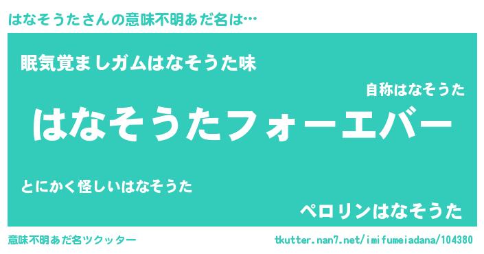 | ポケモン風あだ名 | 『ハナソダネ』『ハックウザ』 |