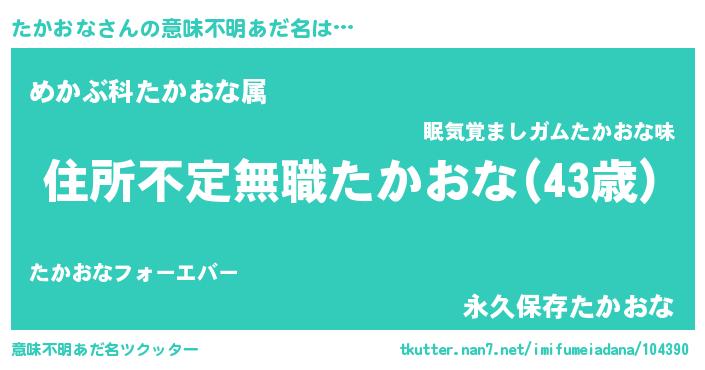 | 男性向けラノベタイトル風あだ名 | 『この素晴らしい世界にたかおなを!』 |