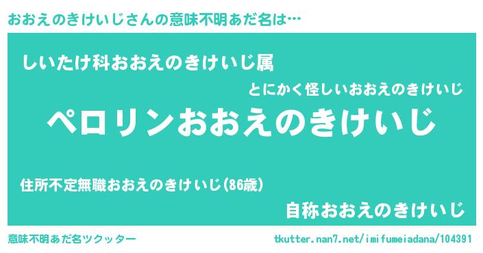 | 男性向けラノベタイトル風あだ名 | 『おおえのきけいじの憂鬱』 |