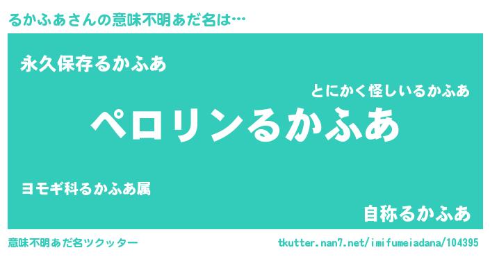 | 男性向けラノベタイトル風あだ名 | 『るかふあの憂鬱』 |