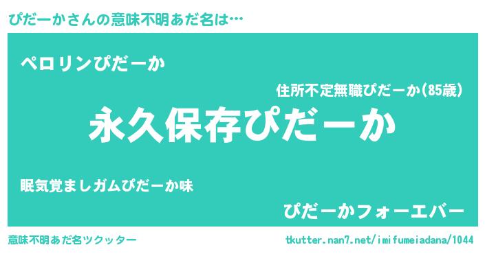 | 女子向けラノベタイトル風あだ名 | 『異世界で失敗しない100のぴだーか』 |