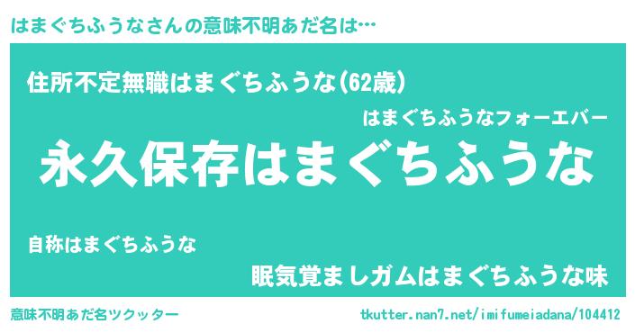 | 男性向けラノベタイトル風あだ名 | 『はまぐちふうなという概念が存在しない退屈な世界 』 |