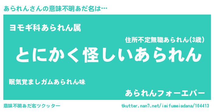 | ヘコむあだ名 | 『あらっ子』『つくし』『あらもー』 |