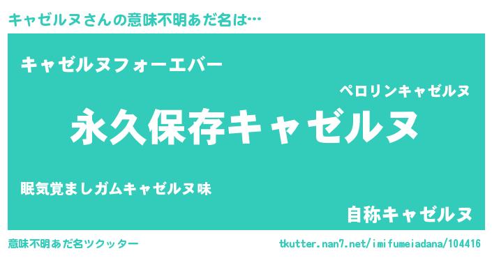 | ポケモン風あだ名 | 『メロキッャ』『ゼニキャ』 |