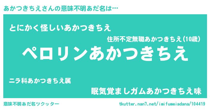 | ヒーロー風カッコイイあだ名 | 『スーパーアカツキチエ』『魔戒騎士アカ』 |
