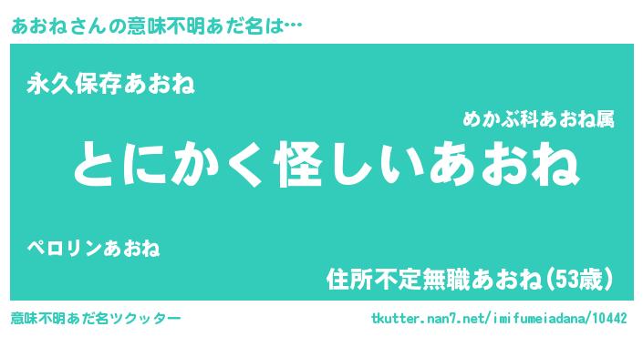 | 男性向けラノベタイトル風あだ名 | 『あおねの嫁は女の子じゃないと思った?』 |