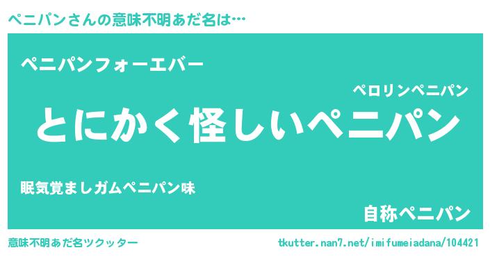 | ヘコむあだ名 | 『ペニを』『酢こんぶ』『ペニにゅー』 |