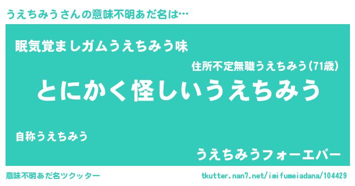 | 男性向けラノベタイトル風あだ名 | 『ダンジョンにうえちみうを求めるのは間違っているだろうか』 |