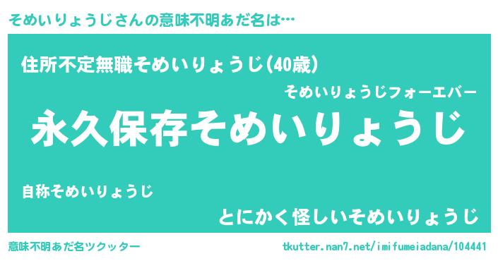 | 男性向けラノベタイトル風あだ名 | 『そめいりょうじという概念が存在しない退屈な世界 』 |