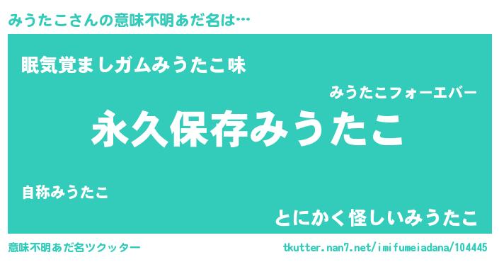 | ヒーロー風カッコイイあだ名 | 『ネオミウタコ』『慈愛の使者みうたこ』 |