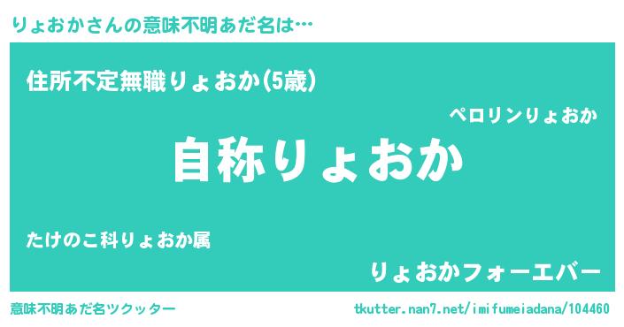 | 女子向けラノベタイトル風あだ名 | 『りょおかストレイドッグス』 |