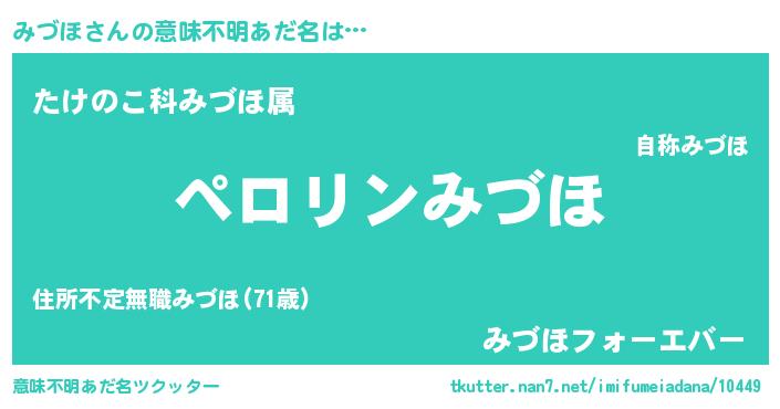 | ピコ太郎風あだ名 | 『ミコ五郎』『ピミ一郎』『ミヅ八郎』 |