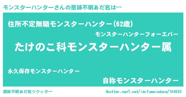 | 欧米人風あだ名 | 『トリンドルモンスターハンター』 |