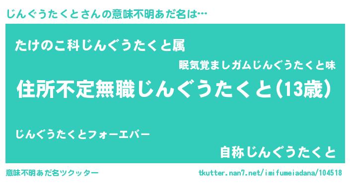 | 胡散臭い通販商品みたいなあだ名 | 『ハリウッド女優が絶賛した100年もののヴィンテージワイン…その名も「じんぐうたくと」』 |