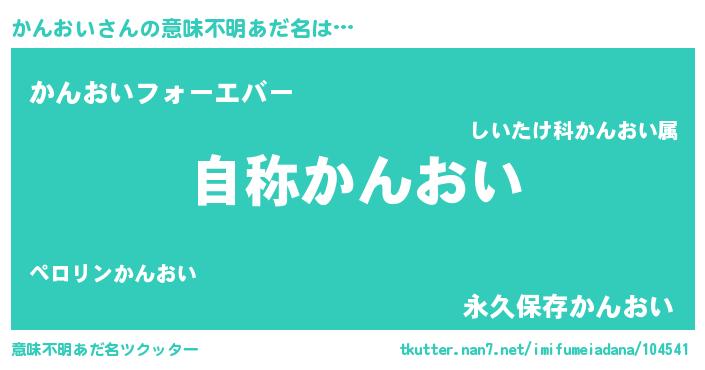 | 男性向けラノベタイトル風あだ名 | 『Re:かんおいから始める異世界生活』 |