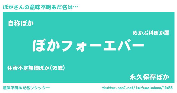 | ヒーロー風カッコイイあだ名 | 『ウルトラぼかマン』『超時空戦士ボカ』 |