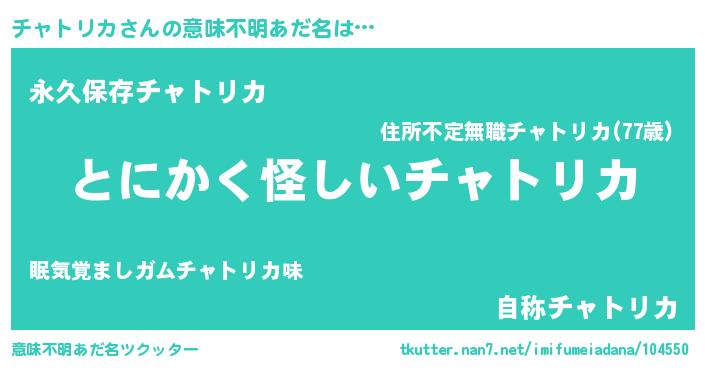 | ヘコむあだ名 | 『チャっ子』『チャトリカ(笑)』 |