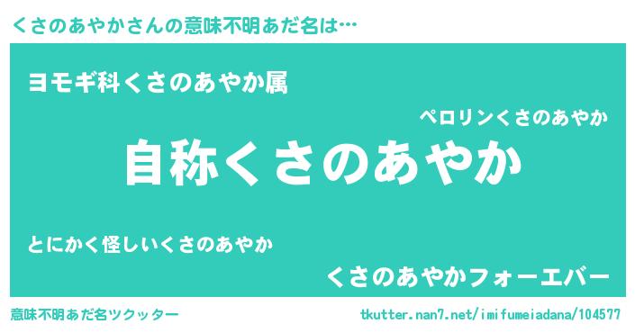 | 女子向けラノベタイトル風あだ名 | 『くさのあやかストレイドッグス』 |