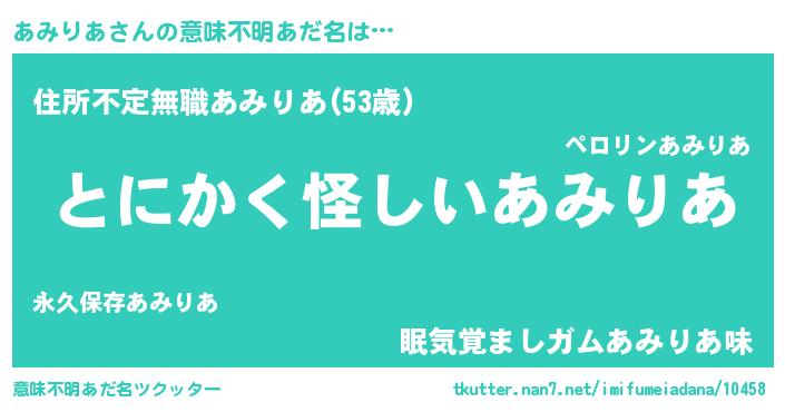 | 男性向けラノベタイトル風あだ名 | 『あみりあの嫁は女の子じゃないと思った?』 |