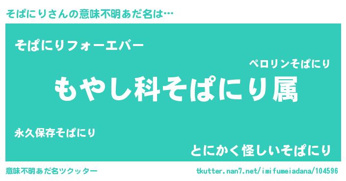 | 男性向けラノベタイトル風あだ名 | 『転生したらそぱにりだった件』 |