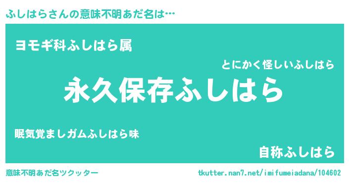 | ヒーロー風カッコイイあだ名 | 『ネオフシハラ』『究極戦士フシハラ』 |