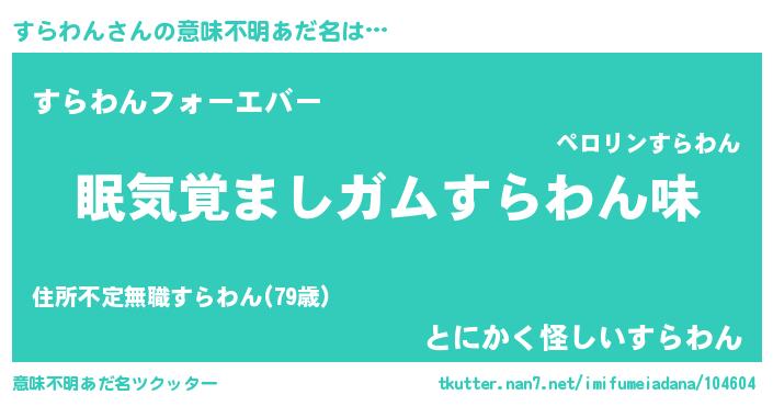 | ヒーロー風カッコイイあだ名 | 『愛の使者すらわん』『暗黒騎士スラ』 |