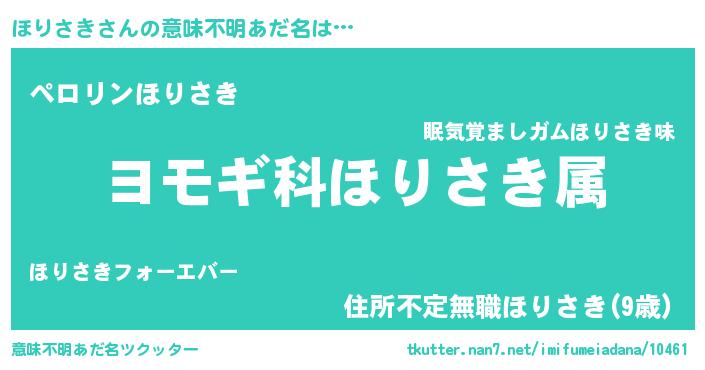 | 男性向けラノベタイトル風あだ名 | 『ほりさきに滅ぼされるだけの簡単なお仕事です』 |