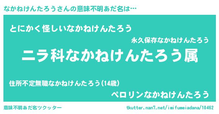| ポケモン風あだ名 | 『ナカキング』『ヒナカネケンタロウ』 |