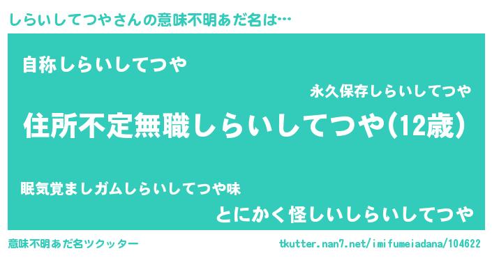 | 欧米人風あだ名 | 『ダレノガレしらいしてつや』 |