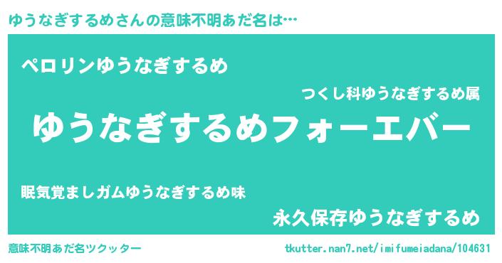 | ファンタジー風あだ名 | 『エターナルユウナギスルメー』 |