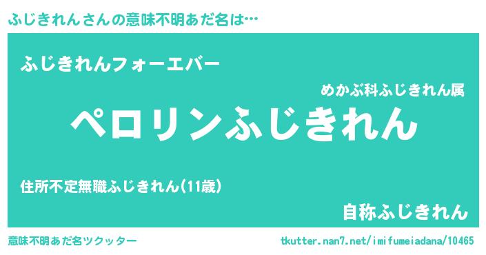 | 男性向けラノベタイトル風あだ名 | 『ふじきれんに滅ぼされるだけの簡単なお仕事です』 |