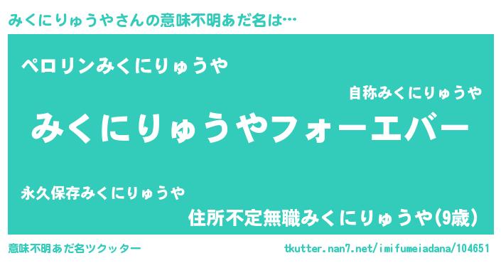 | ファンタジー風あだ名 | 『エターナルミクニリュウヤー』 |