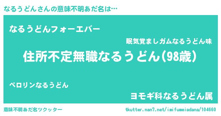 | 男性向けラノベタイトル風あだ名 | 『この素晴らしい世界になるうどんを!』 |
