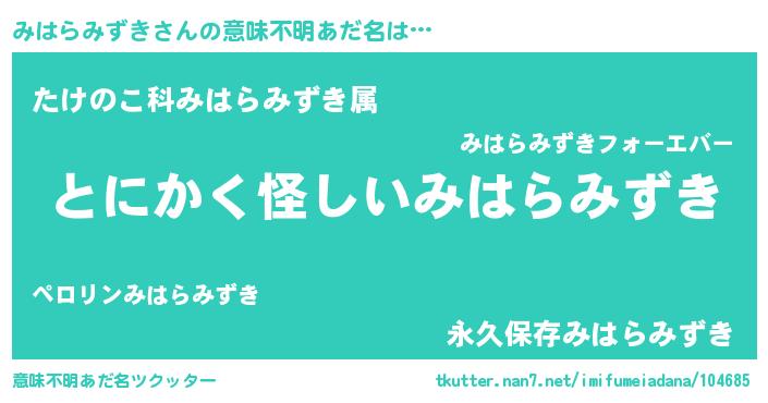| ポケモン風あだ名 | 『ヒミハラミズキ』『ミハキング』 |