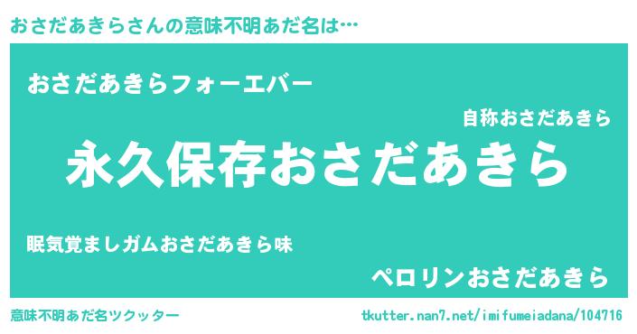 | ヘコむあだ名 | 『おさだあきら(小並感)』『酢こんぶ』 |