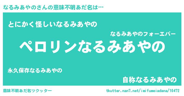 | 男性向けラノベタイトル風あだ名 | 『なるみあやのの憂鬱』 |