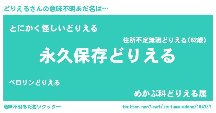 | 胡散臭い通販商品みたいなあだ名 | 『来世でも幸せになれる水素水…その名も「どりえる」』 |