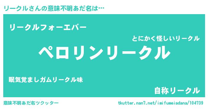 | 男性向けラノベタイトル風あだ名 | 『リークルに滅ぼされるだけの簡単なお仕事です』 |