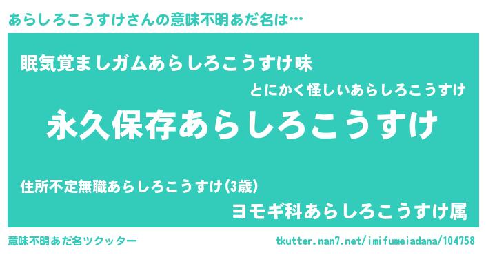 | 胡散臭い通販商品みたいなあだ名 | 『来世でも幸せになれる健康食品…その名も「あらしろこうすけ」』 |
