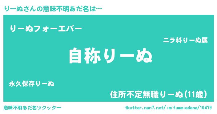 | 男性向けラノベタイトル風あだ名 | 『Re:りーぬから始める異世界生活』 |