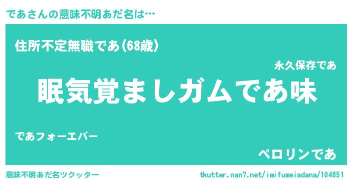 | 欧米人風あだ名 | 『ダニエルであ』『ダレノガレであ』 |